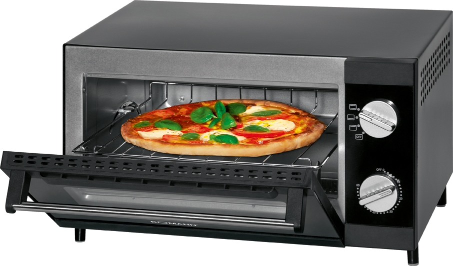 Trouba pro přípravu pizzy, grilování a opékaní s výkonem 1 000 W. Vnitřní plocha je o rozměrech 26 x 25 cm, kdy kapacita je 12 litrů. Pizza trouba je vybavena horním a spodním ohřevem a je možné tyto ohřevy kombinovat. Je tak možné spustit samostatně horní ohřev, spodní ohřev, nebo oba najednou. Topná tělesa jsou vyrobena z křemíku a je tak zaručena jejich dlouhá životnost. Trouba disponuje časovačem, který lze nastavit až na 60 minut, kdy při vypršení času zazní akustický signál. Součástí balení je plech na pečení o rozměru 23,5 x 22 cm a zásuvka na droby, která usnadňuje čištění. Rukojeť na dvířkách je z nerezové oceli. Trouba je vybavena ochranou proti přehřátí. Napájení je 230 V, 50 Hz.