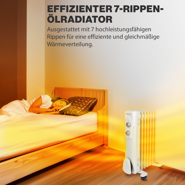 7žebrový olejový radiátor od značky Clatronic se skvěle hodí pro vytápění například kanceláří, ložnic, obývacích pokojů a dalších místností. Jeho výkon dosahuje až 1 500 W. Výkon lze nastavit ve 3 krocích (600/900/1500 W) podle individuální potřeby. Nastavení požadované teploty se provádí plynule nastavitelným termostatem.